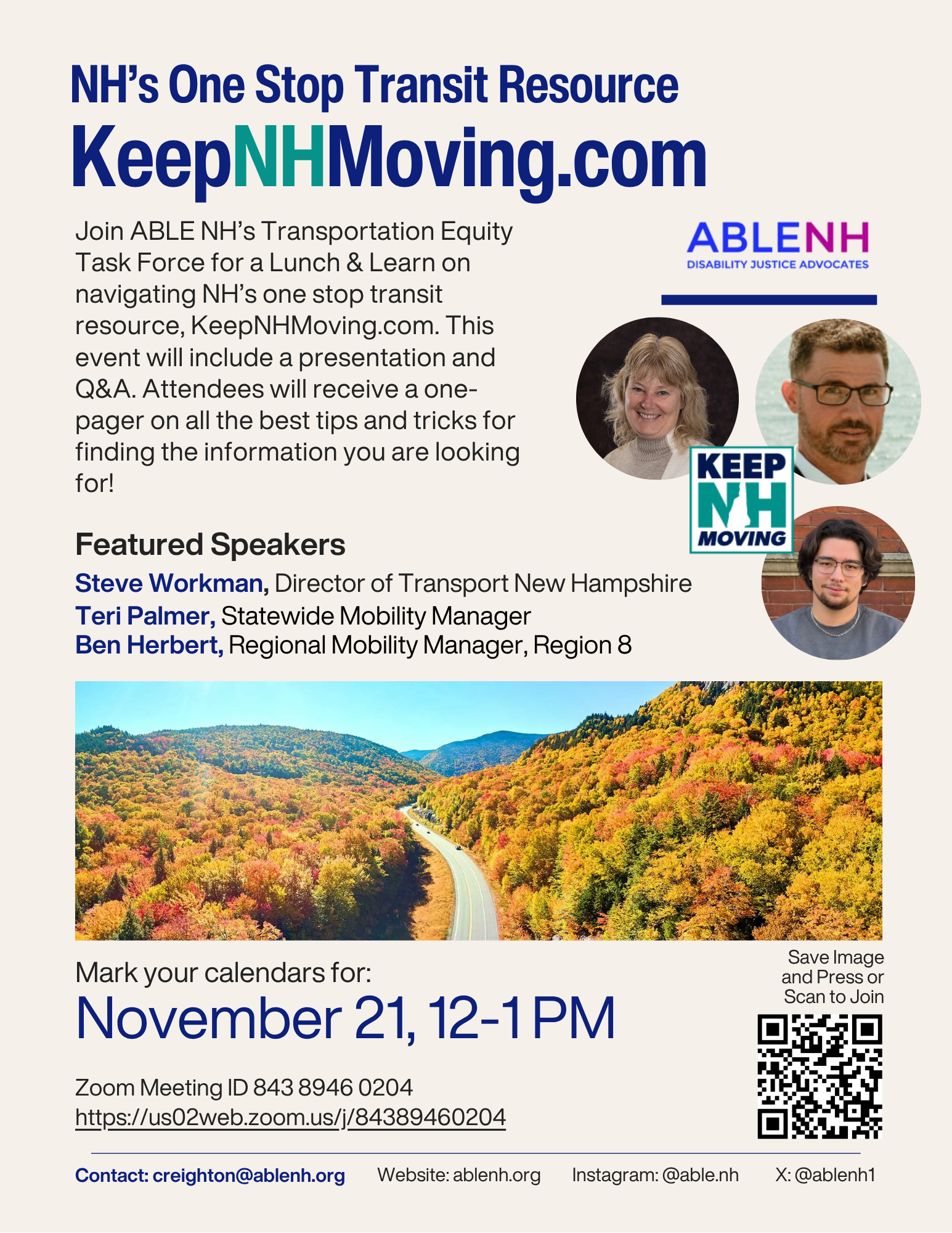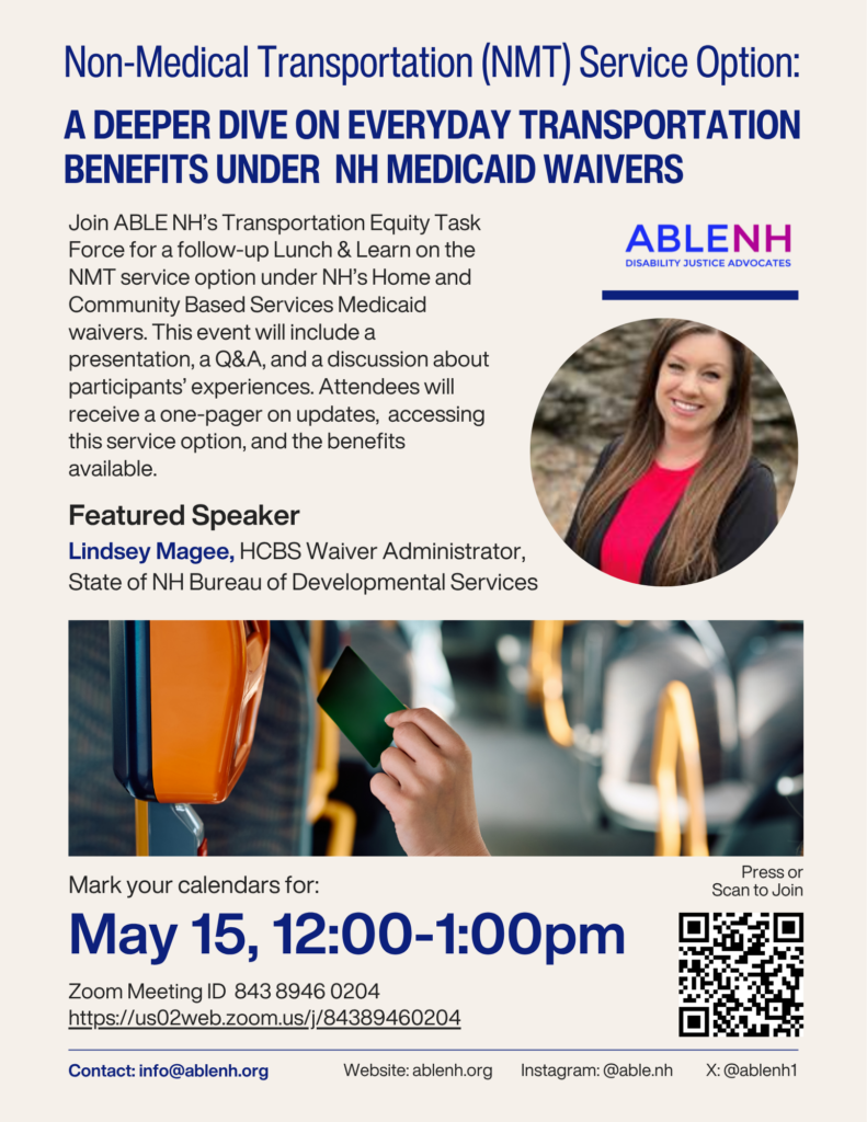 ABLE NH Transportation Equity Lunch & Learn Series– May 15th, 12:00-1:00 PM.
